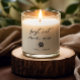 Cute and minimal candle gift for a dog owner. The text says "best cat mom ever" in script font. There is also an illustration of a paw print.