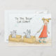 To The Best Cat Sitter! All text can be customized. A cute little girl in a red dress, walking two gray cats with blue eyes in boxes by pulling them with a string. Unique cat walk. Sweet cat pet cartoon illustration drawing by Donna Leger.