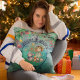 Cute Christmas pillow - "The best Christmas is always with Grandparents " featuring a colorful blue woody background with Christmas decorations, a bird, a little girl, and a baby. This would be a great Christmas Gift from Grandkids to Grandparents. Cute watercolor graphic, hand painted on both sides. All text allows for customization. Will look great under the Grandparents Christmas tree.