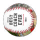 Show your appreciation for an amazing coach with this custom baseball! Perfect for honoring a high school baseball coach, this ball features the bold message "BEST COACH EVER" and a customizable space for the coach's name, the school name, and the year. This thoughtful gift is a great way to commemorate a special season and thank a coach who has made a difference. Add a photo of the coach or a memorable moment from the season to make it even more personal!