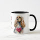 "Best DOG Mom" declares this cute mug at the center. The image on each side is an adorable image of a blonde Cocker Spaniel with a red heart. Perfect for Mother's Day or her birthday! All the text is customizable, so you may change it for Dad on Father's Day, too.