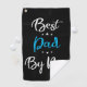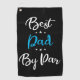 Modern Best Dad By Par Golf Towel. Design featuring calligraphy script in white and blue ''Best Dad By Par'' on a black background. Perfect as a gift for golfer dad for fathers day, Christmas , birthday etc