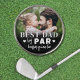 This personalized golf ball marker is a perfect way to celebrate the "Best Dad By Par." The design features a bold mix of typography with script fonts, along with a couple of small hearts on each side of the phrase "by par" for a sweet and loving touch. A black gradient at the bottom fades into a customizable photo, which can feature the gifter, Dad with his kids, or any special memory. Add the kids' names at the bottom to make it even more personal. Whether it's for Father's Day, a birthday, or Christmas, this custom golf ball marker is a unique and thoughtful gift that reminds Dad he's loved every time he hits the green.