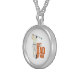 I chose gold plated so that the metal would not react with my skin oils and perspiration. But, I changed the necklace from the gold plated one to a sterling silver. My skin cells will tarnish the silver. But it will not look as bad if some portion of the gold plated necklace somehow became compromised. Zazzle did a find job turning the picture into a pendant for me. As you can see, the colors and the printing of the final product, match the preview. The picture I took is not very clear. But I am pleased with the product I received.