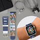 Create your own Apple Watch Band with 4 of your favorite photos. The design is lettered with Best Dad Ever in bold, modern typograpny and printed in blue and white. The photo template is set up for you to add your pictures from top to bottom, which are displayed in square / instagram format in a simple photo strip style collage. If you wish to edit the color, click "customize further" or message me for assistance.