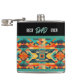 Unique Native American, Aztec style design flask in shades of turquoise blue, orange and tan with black accents. Typography at the top says Best Dad Ever in white and turquoise blue against a black background.
