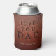 Vintage faux embossed brown leather (PRINTED) "BEST DAD EVER" (front) and 'LOVE YOU DAD" (back) bold typography stamp can cooler personalized on both faces with your 3 photos, your text, and signature. ++++++++++++ Could be a great keepsake gift for your dad for birthday, Father's Day, Christmas, or any other occasion.