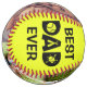 Best Dad Ever Custom Photo Personalized Name Softball features two of your favorite photos with the text "Best Dad Ever" in modern black script and your custom text in the center on a yellow background. Personalized by editing the text in the text boxes provided and adding your photos. PHOTO TIP: edit your photos prior to uploading to Zazzle with the subject in the centered. Designed by ©Evco Studio www.zazzle.com/store/evcostudio