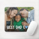 Modern family picture mouse pad featuring a full printed photo for you to replace with your own, the cute saying "best dad ever" incorporating a blue heart into the typographic design, and the names of who it's from.
