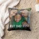 Modern family picture pillow featuring a full printed photo for you to replace with your own, the cute saying "best dad ever" incorporating a blue heart into the typographic design, and the names of who it's from.