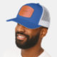 Custom Leather Patch Hat, Sytle: Adult Retro Trucker Cap, Color: Heather / Black, Shape: Circle