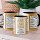 Your Father's birthday is approaching and you are looking for the ideal gift for him? Looking for the perfect gift for the upcoming Father's day? And by any chance does your father likes consuming caffeine every day? This funny Mug design might just be what you need. The design has a sheet consisting of the attributes of your father with its percentage. A Best Dad Ever Logo is also present along with your personalized name(s) below it. The funny nutrition facts and their percentages can be personalized by you as well.