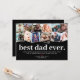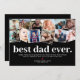 Modern fathers day card featuring a photo collage of 12 family pictures for you to replace with your own, the saying "best dad ever.", a personalized thank you note, a cute red heart, and your childrens names.