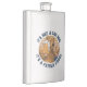 The product is a good size and came exactly as it was pictured. The lid is not attached to the flask, which could be dangerous on drunken nights... The print came out surprisingly well and looks very sharp. Would definitely recommend.