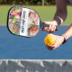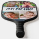 This fun "Best Dad Ever!" Pickleball paddle space for 4 square photos for pictures of children or dad. Custom text allows you to personalize with names of the kids.