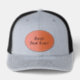 Custom Leather Patch Hat, Sytle: Adult Retro Trucker Cap, Color: Heather / Black, Shape: Circle