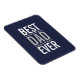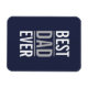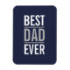 This magnet features phrase "Best Dad Ever" in white and grey modern bold sans serif font style on navy blue background.