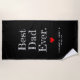 Minimal and modern “Best Dad Ever“ with hand drawn serif typography with a red heart in the center and personalized names at the bottom.