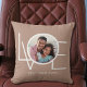 This Best Dad Ever Photo Pillow is decorated with the word LOVE in white on a beige background.