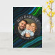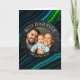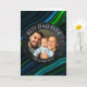 A sentimental photo card. A Father's Day card that you can upload your favorite photo to, along with text, "Best Dad Ever" and "we love you so much." Blue and green abstract background.