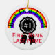 Ceramic Ornament with Rainbow, "best dad ever!", the #1 on a black ribbon and personalized with your words and name on the front, and room for your favorite photo on the back. Just choose the personalize option and follow the prompts! Designed by HAMbyWhiteGlove aka HAMbyWG.
