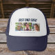 This hat features three photo frames for pictures of children or dad. Dark blue text "Best Dad Ever" appears above the pictures and custom text below allows you to personalize with children's names. This is a perfect heartfelt Father's Day or birthday gift for any dad.