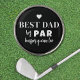 This personalized golf ball marker is a perfect way to celebrate the "Best Dad By Par." Set against a solid black background, the design features a bold mix of typography with script fonts, with one small heart at the top for a simple and loving touch. The phrase "by par" is centered and clear, with the name placed below for a personal finish. A thoughtful gift for Father’s Day, birthdays, Christmas, or any occasion that reminds Dad he’s appreciated every time he hits the green.