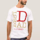 Don't wait for Father's Day to celebrate your dad. All year long, there are multiple occasions to express your love to him. So, here is a one-of-a-kind "Best Dad" design in red and gold glitter colors for a white men's t-shirt. We used a very trendy font for this text, placed "BEST" vertically, and used a big red "D" for dad. You will find a customizable name at the bottom written in a modern dotted red font. Please, replace the default name with the one you wish, or feel free to delete it.