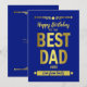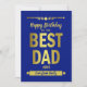 A Best Dad Flat birthday card with a lovely minimalist typography design of metallic gold lettering on a blue background. A lovely simply design ideal for any father. Customize with the event then personalize with a name. Background color can be amended if needed. Great for birthdays as well as Fathers day.