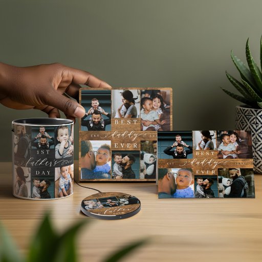 Transform your father's workspace into a gallery of cherished memories with our Best Daddy Ever faux rustic woodgrain photo collage desk mat. This special, personalized gift is ideal for Father's Day, birthdays, or any occasion to celebrate your dad's unwavering love and support. Our desk mat features a simple yet elegant photo collage grid, allowing you to display eight of your most beloved family photos. This design not only adds a personal touch to his desk but also serves as a daily reminder of the wonderful moments shared with family. The phrase "Best Daddy Ever" is beautifully rendered in a handwritten script style, complemented by a classic serif text and a faux rustic woodgrain background, creating a harmonious blend of modern, rustic charm and timeless aesthetics. For an extra personal touch, customize the desk mat with the year your family was established, making this gift a unique and meaningful keepsake. Whether for work or play, this desk mat is a perfect way to keep your father inspired and connected to his loved ones. Ideal for enhancing any workspace, this desk mat is more than just a practical accessory; it's a heartfelt tribute to the incredible dad in your life. Design and layout by © Moodthology Papery