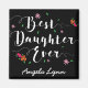 Beautiful modern script calligraphy in white with words, "Best Daughter Ever." Design is centered in colorful floral and greenery accents on black background. Placeholder for your daughter's custom name in bottom center of design.