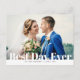 A modern photo thank you card design with editable text and white lettering. Feel free to personalize the bride and groom photo and text.