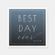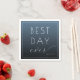 This elegant wedding napkin design features a modern, minimalistic layout with a gradient blue background that transitions from light to dark. The phrase "BEST DAY ever" is prominently displayed in a mix of bold uppercase and flowing cursive fonts, creating a celebratory and sophisticated mood. The clean lines and calming color palette evoke feelings of tranquility and joy, making it perfect for commemorating your special day.