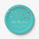 Best Day Ever Teal and Rose Gold Confetti Wedding Paper Plates