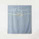 Elegant, modern, minimalist dusty blue Best Day Ever wedding backdrop with gold rope heart.