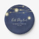 Best Day Ever - Mason Jar and String Lights on Navy Blue Night Sky Wedding Reception Cocktail Party Plates. This Wedding Paper Plates can be customized to include the bride and groom names as well as the wedding date.