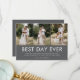 Celebrate your "Best Day Ever" by sharing your gratitude with our 3-Photo Wedding Thank You Card. This design features space for three of your favorite wedding photos, beautifully arranged alongside elegant "Best Day Ever" typography. Personalize it further with a heartfelt thank-you message to make it a unique keepsake for your guests.