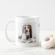 This cute and simple mug says "Best Dog Dad" in trendy, handwritten black text with a matching paw print and a spot for the name of your puppy. There is also room to show off two of your favorite personal photos of his pet.