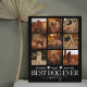 Personalized pet photo plaque featuring a trendy black background that can be changed to any color, a 9 picture collage of your dog, character words that represent your animal, the saying "best dog ever", and their name.