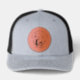 Custom Leather Patch Hat, Sytle: Adult Retro Trucker Cap, Color: Heather / Black, Shape: Circle