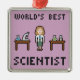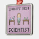 Image depicting a pixel female scientist, her lab and the words: World's Best Scientist.