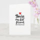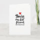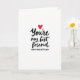 This card features a simple white background with a tender message centered in the middle, setting a quiet, close tone between two people ❤️. The main line reads “You’re my best friend” in flowing black lettering that looks like smooth brush strokes. Just above the start of the first word sits a small red heart with light shading that gives it a slightly raised look. Under the main line, “HAPPY MOTHER’S DAY” appears in uppercase black letters, smaller and neatly aligned beneath. The open white space around the words makes the message feel intimate, like a private note shared between friends or family. The limited palette keeps attention on the affectionate phrasing and the single red accent, with no extra illustrations to distract. The red heart is positioned near the top-center area above the first line, standing out against the plain white field 🌼.