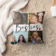 Modern typography photo collage pillow featuring 4 photos and typography script ''besties'' on the front.