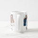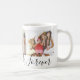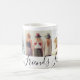 On a white coffee mug are 3 photos honoring women friendship with an elegant script on the bottom with the text, best friends forever where you can customize the title and photos to your liking.