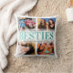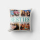 Modern best friends pillow featuring a 4 photo collage, the word "besties" in a cute trendy teal gradient, a personalized friendship quote, and your names.