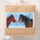 Two horses share a moment on a snowy winter morning