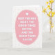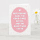 This Valentine’s Day card is a warm tribute to friendship and support. At the center, a heartfelt message reads, “BEST FRIENDS MAKE THE GOOD TIMES BETTER, AND THE HARD TIMES EASIER,” written in bold white letters with soft shadows that help the words stand out. The message sits inside a large pink circle outlined in white, giving it the look of a thoughtful note meant just for someone special. A small white heart above the text adds a gentle touch of affection. The creamy background is dotted with tiny pink stars and faint heart shapes, adding charm without distracting from the message. The soft pink and warm tones create a comforting, meaningful card made to celebrate true friendship.