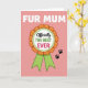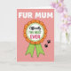This greeting card features a stylized award rosette centered on a soft pastel pink background, giving the scene a gentle, affectionate tone ❤️. Across the top, large white sans-serif letters read “FUR MUM,” spaced clearly so the message stands out right away. The rosette is shaped like a flower with marigold-orange outer petals, suggesting a sunny, caring spirit like a warm hug shared between close friends. Inside, a pale lime-green scalloped ring frames the wording “Officially THE BEST EVER,” with “Officially” in flowing black cursive-style lettering, “THE BEST” in bright green, and “EVER” in red for emphasis. Two lime-green ribbon tails drop from the rosette, pointing downward like a small celebration banner. The layout feels light and affectionate, as if it’s cheering on someone who nurtures a beloved pet with steady devotion 🌼. In the bottom-right corner, two small black paw prints sit neatly against the pink background.