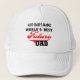 Team style and baseball style orange and black text World's Best Future Dad T-shirts, hoodies, mugs, cards, stickers, keychains, and other future dad apparel and gifts. You can easily add the future dad's name to this customizable hat!