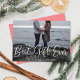 This sweet yet modern holiday pregnancy or birth announcement card features white calligraphy script over a full-bleed single, horizontal photo. The calligraphy script greeting on the front says "Best Gift Ever". This design accommodates a single, horizontal photo on the front of the card. On the reverse side you will find a festive red and white horizontal stripe pattern which can be removed or customized. You can also add another photo or text to the back by selecting "customize design further".